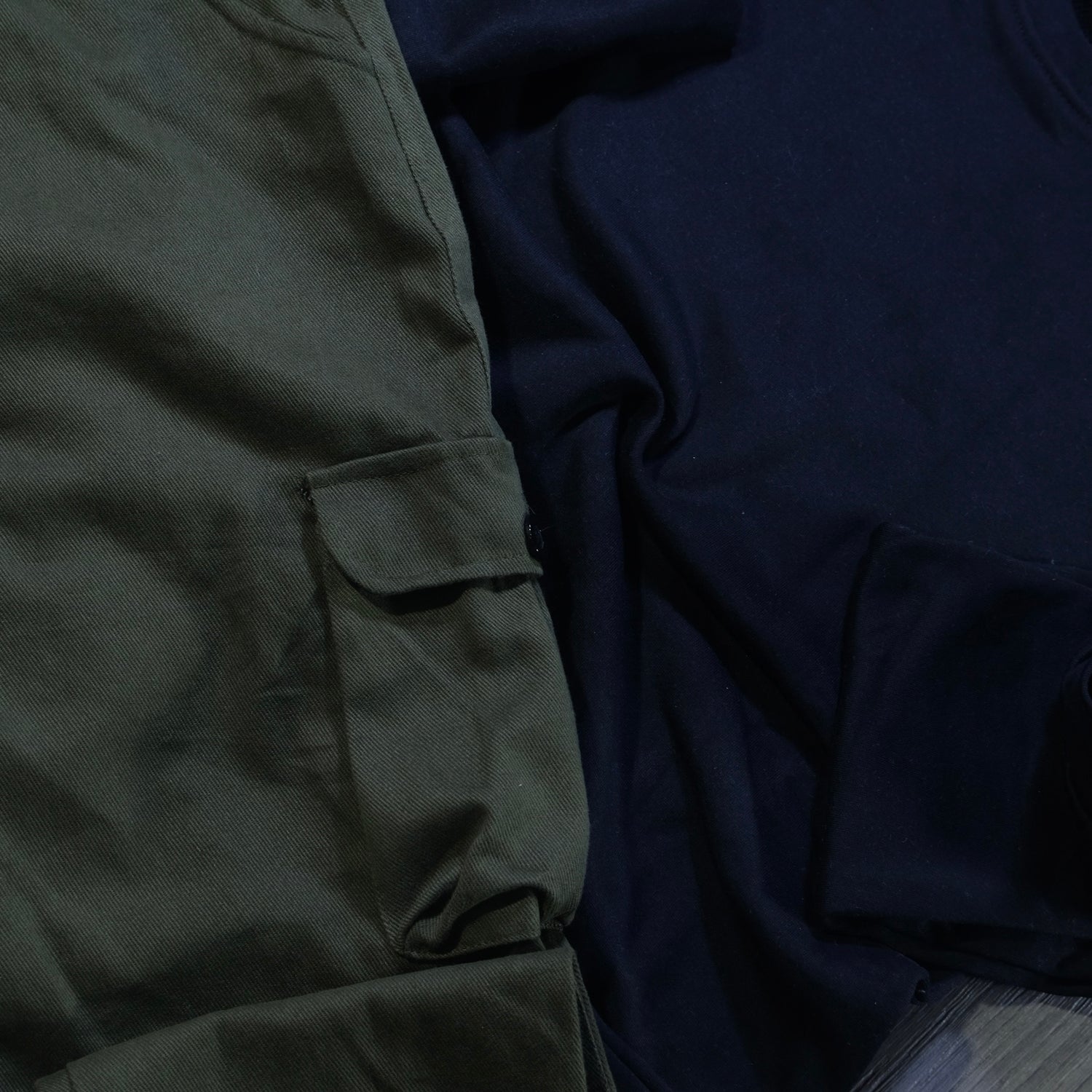 Ensemble Cargo Kaki Fonce + Sweat Bleu Marine