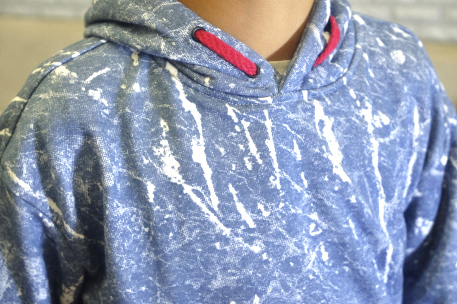 Description Molleton doux intérieur bouclettes. Motifs imprimés. Coupe Over Size. Emmanchures descendues. Manches longues.