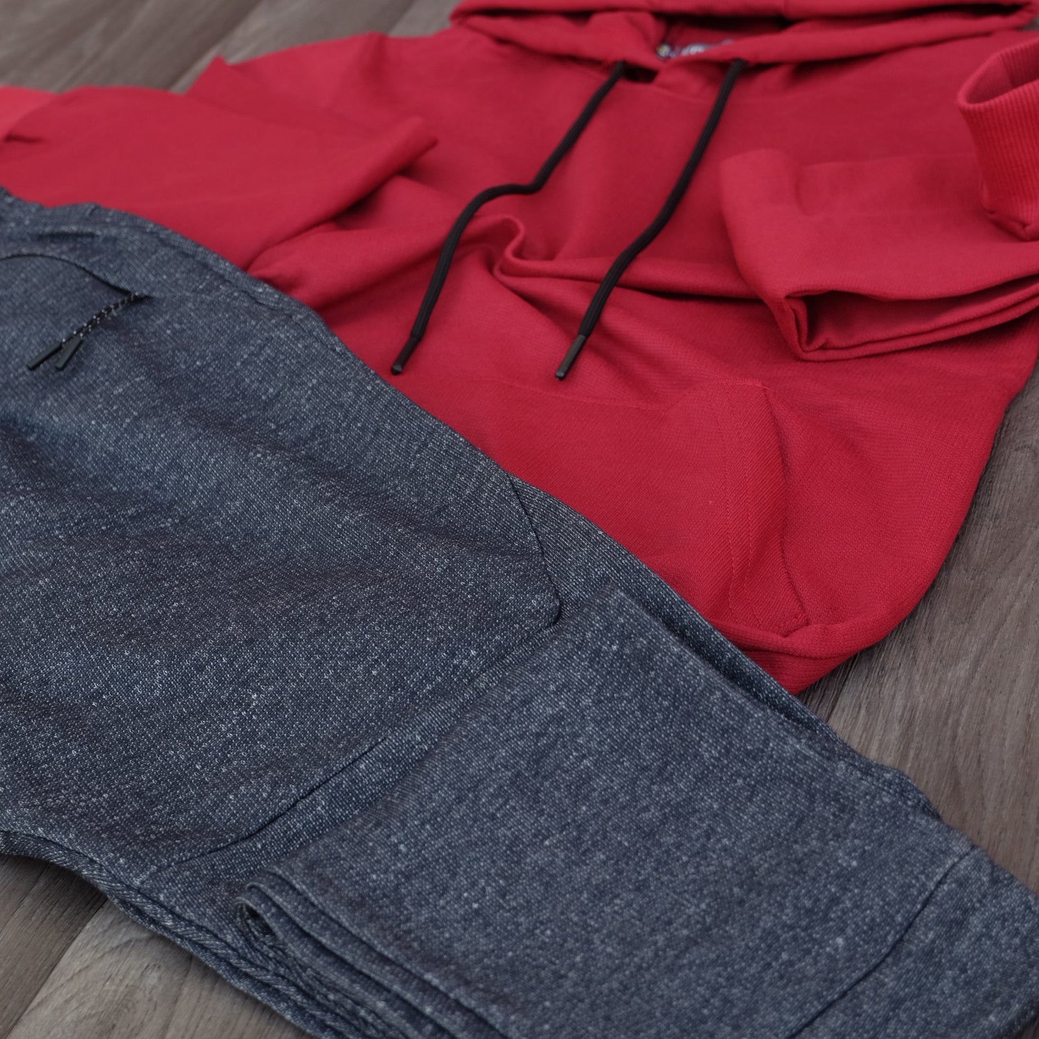 Ensemble Jogging Beska Bleu Chine + Capuche Cotton Rouge